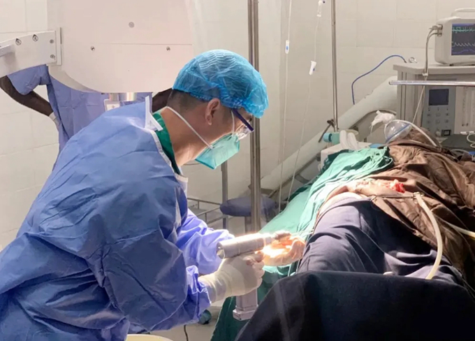 5月26日,在完善必备的术前准备后,手术如期进行。刘清海担任麻醉医师,彭建光负责手术主刀,主管护师张小娜担任手术和麻醉巡回护士,医疗队队员团结协作、默契配合,保障手术平稳推进。