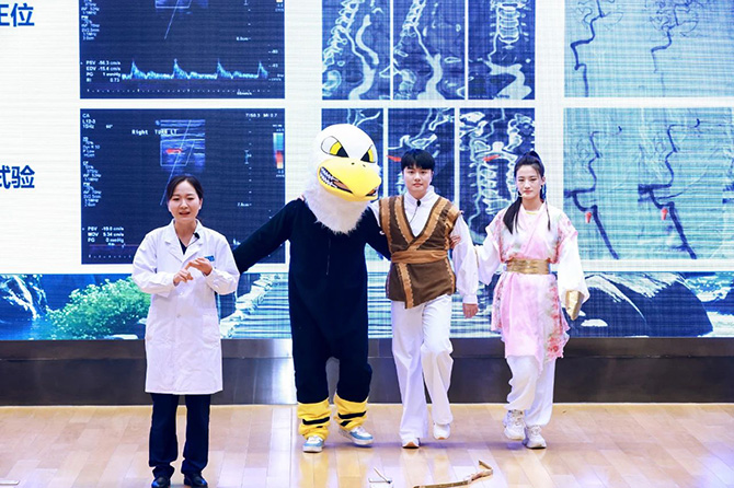 决赛现场气氛热烈,金句频出,干货满满。16组选手以诙谐幽默、慷慨激昂、缓缓道来等多元风格通过舞台剧和演讲的不同表现方式,将一个个复杂难懂的医学知识转化为简单明了、乐于接受的健康科普节目。一场场精彩表现得到在场评委们的一致好评,现场掌声不断、情绪高涨。